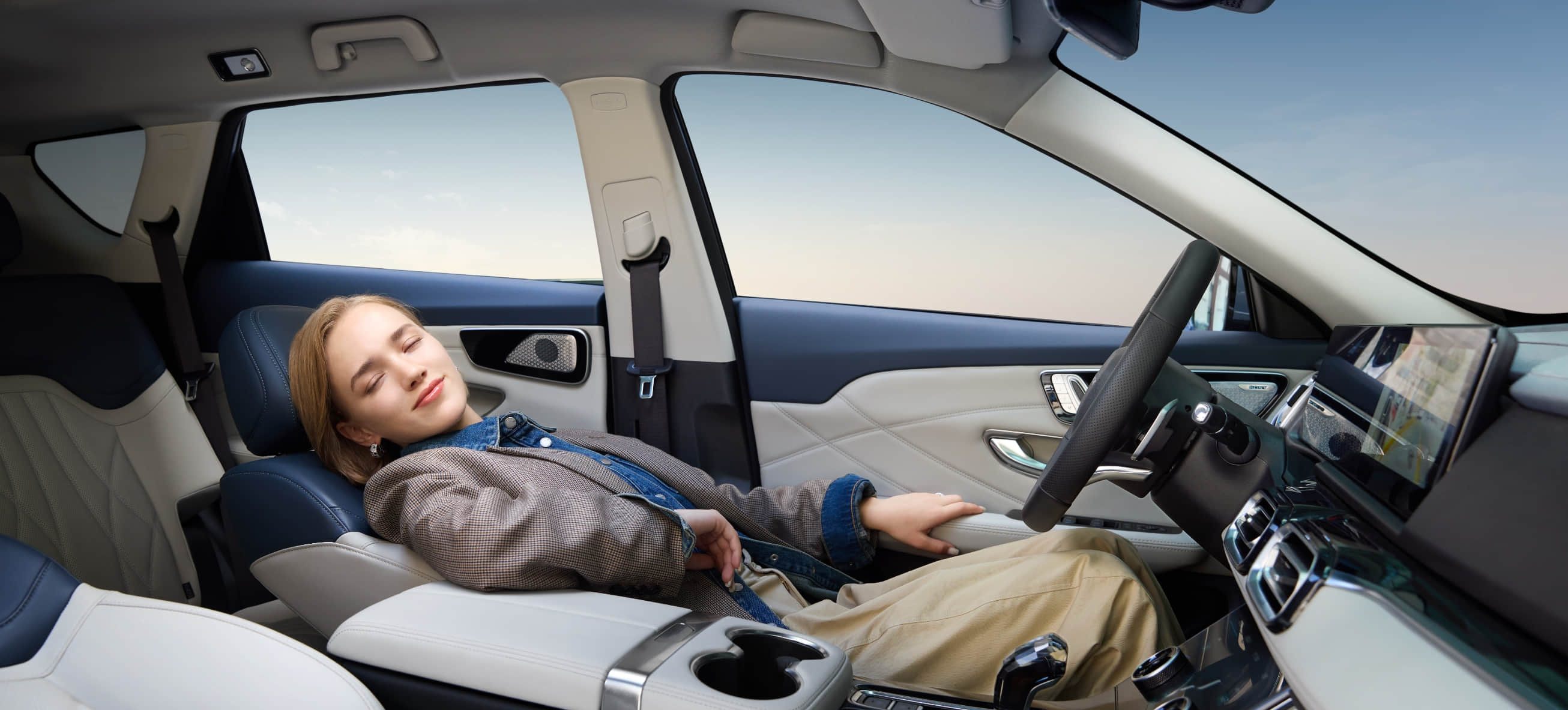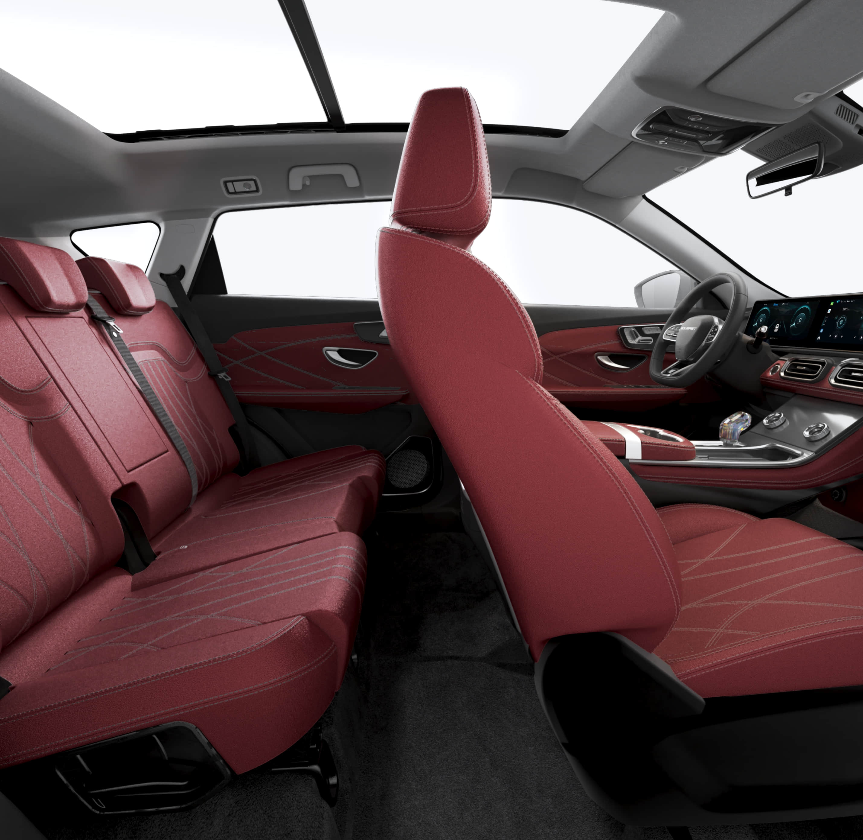 Los materiales amigables con la piel, los asientos alargados en la primera y segunda fila y las costuras intrincadas manifiestan buen gusto. Los recubrimientos de tacto suave, que ocupan el 85% de la decoración interior, le dan la bienvenida con cada toque.