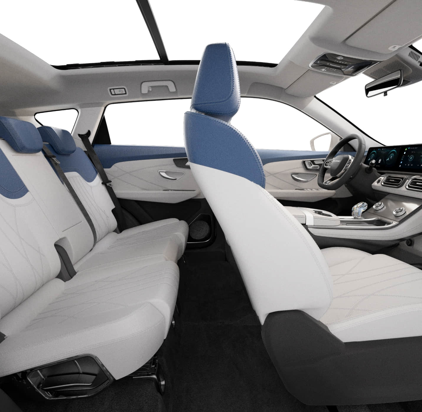 Los materiales amigables con la piel, los asientos alargados en la primera y segunda fila y las costuras intrincadas manifiestan buen gusto. Los recubrimientos de tacto suave, que ocupan el 85% de la decoración interior, le dan la bienvenida con cada toque.