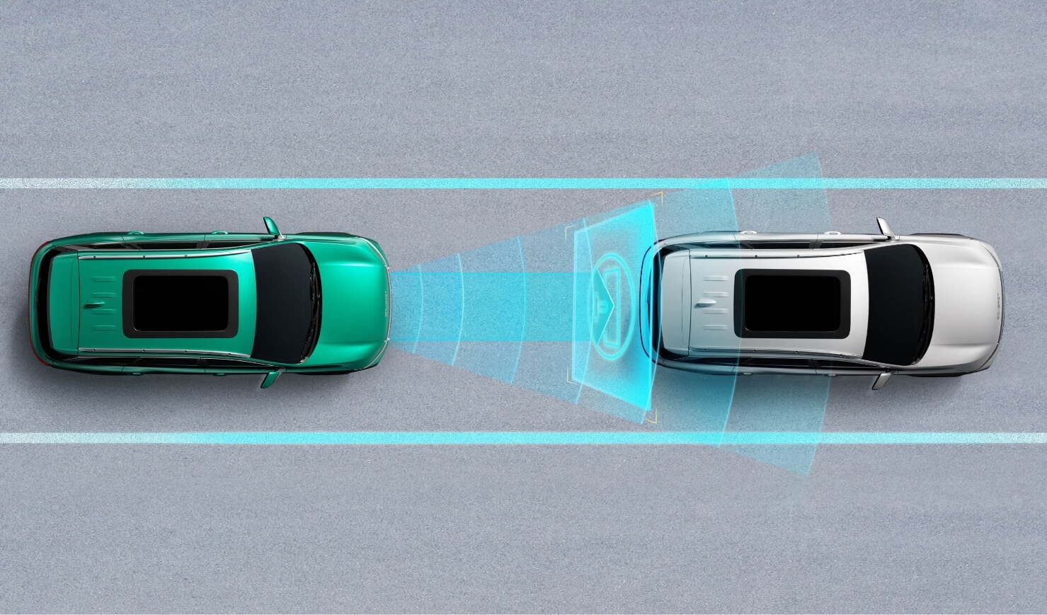 El sistema ajusta automáticamente la velocidad del coche para mantener una distancia de seguimiento segura.